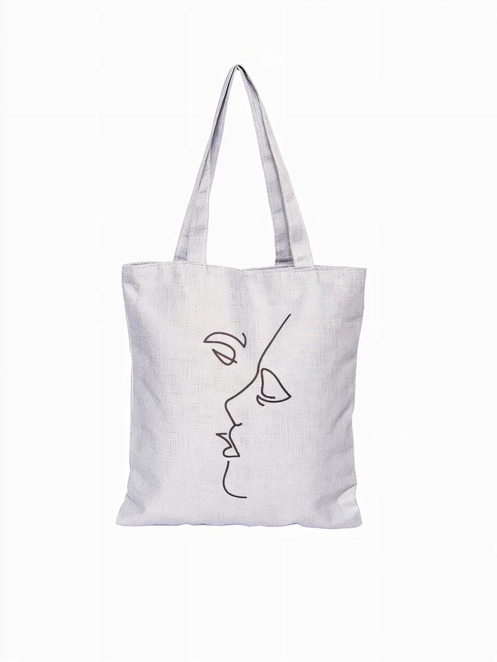 - Класическа чанта за през рамо, изработена от мек плат с декоративен бял печат отпред. Закопчава се с цип. Вътре има голямо отделение и малък джоб с цип. Перфектна за пазаруване!