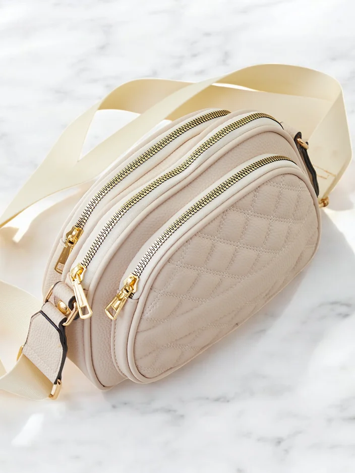 - Дамска овална чанта с цип, изработена от екологична кожа. Моделът има 3 отделения и външен джоб. Допълнително има детайлна регулируема презрамка. Перфектна за ежедневно ползване!