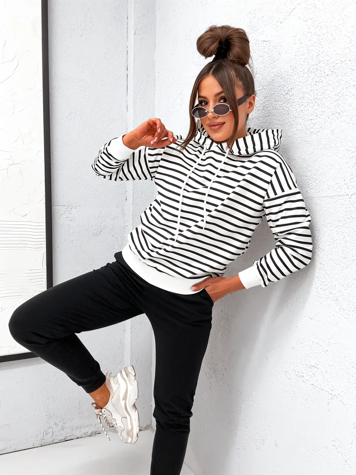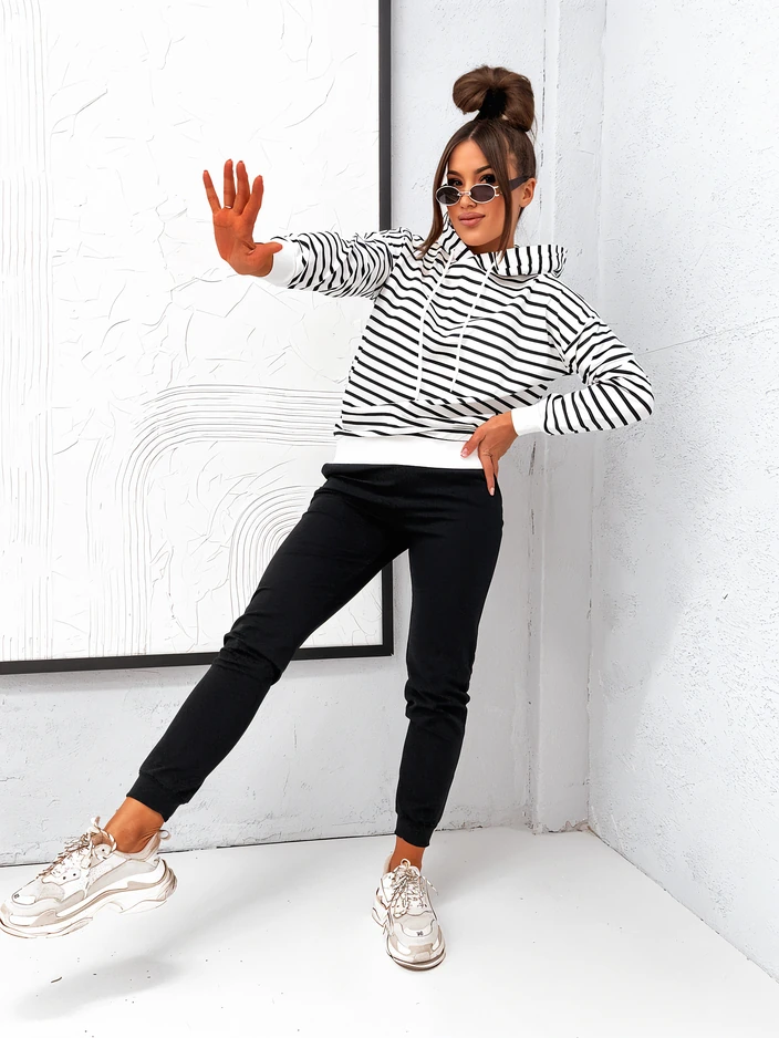 - Дамски комплект анцуг, изработен от приятна материя. Суитшърт с качулка в стил худи. Панталони с еластичен колан и 2 джоба. Перфектният комплект за разходка! ЗАБЕЛЕЖКА: Точност на измерванията (+/-) 1 см.