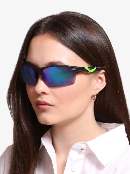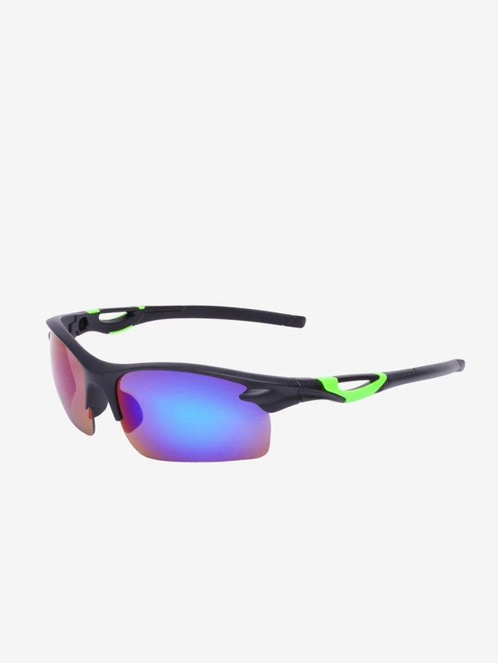 - Леки спортни слънчеви очила с пластмасова полурамка. Лещи в черен нюанс с UV 400 филтър. Идеален аксесоар за активен отдих!
