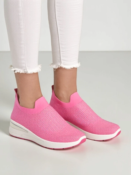 • Стилни дамски обувки на платформа от плат, украсени с камъни. Вътре има мека, текстилна стелка. Обувки тип слип-он. Те ще бъдат чудесен аксесоар за ежедневни тоалети.