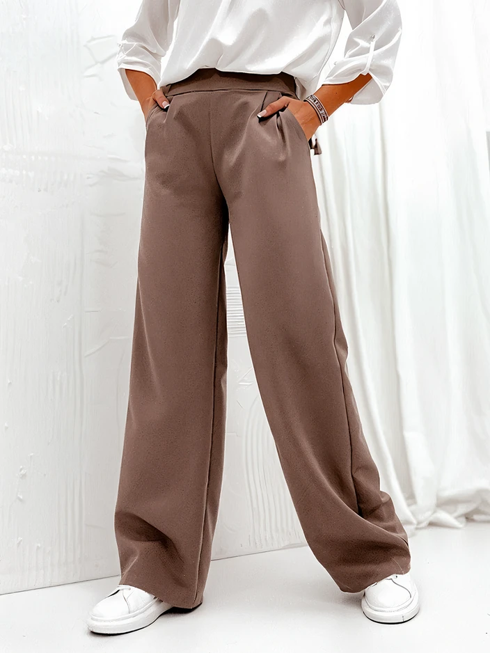 - Широки панталони от лек текстил, моделът има еластичен колан и два джоба. Удобни и уютни! ЗАБЕЛЕЖКА: Точност на измерванията (+/-) 1 см.