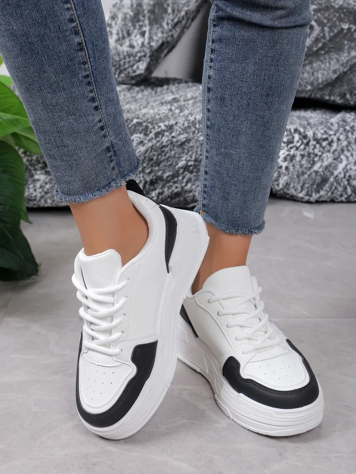- Женски маратонки на плоска подметка - перфектна комбинация от стил и комфорт. Обувките са изработени от еко-кожа. Модел с връзки и текстилна стелка. Идеални за активни хора!