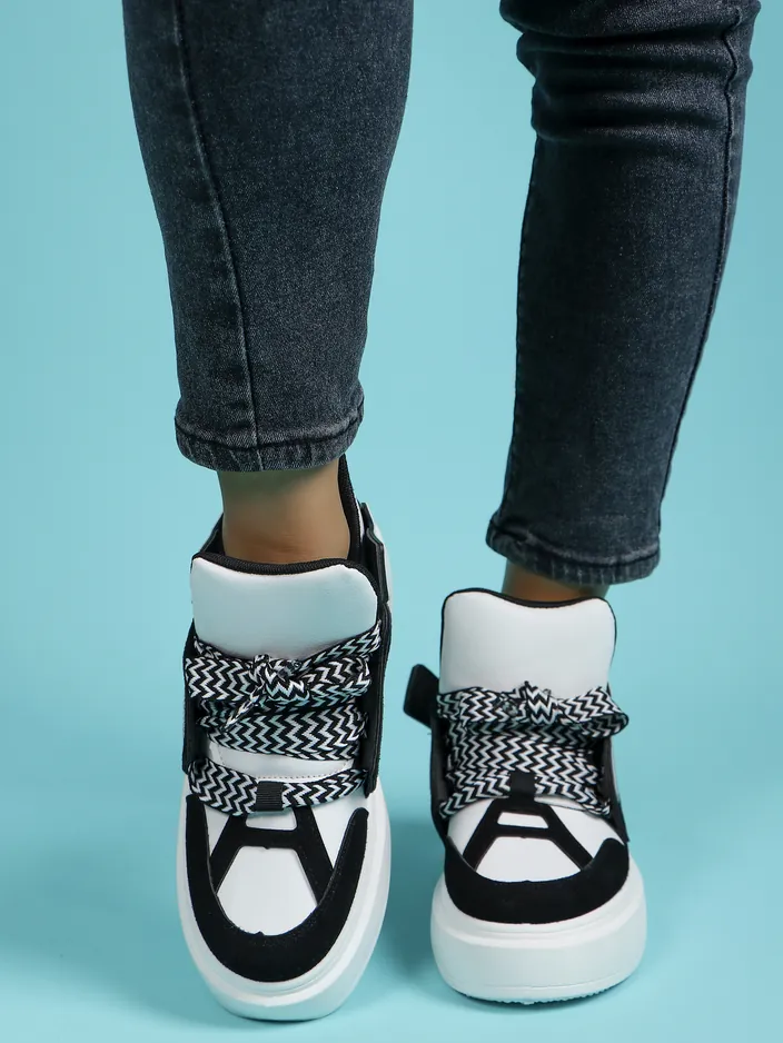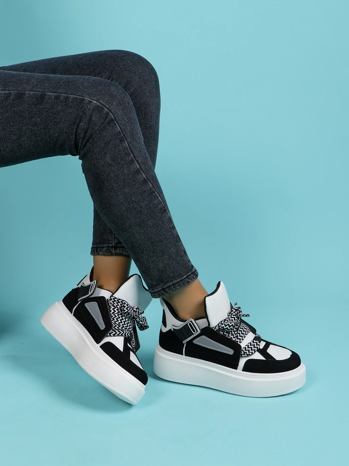 - Еко-кожени маратонки за жени с по-дебела подметка - перфектната комбинация от стил и комфорт. Модел с връзки. Идеални за ежедневни облекла!