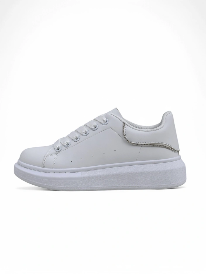 Белите сникърси за жени, изработени от висококачествена еко кожа, са отличен избор за тези, които ценят стила и комфорта. Нашите обувки са проектирани с внимание към детайла, което осигурява не само атрактивен външен вид, но и издръжливост. Еко кожата е екологичен материал и същевременно лесен за почистване. Сникърсите имат плосък ток с височина 4,5 см, което ги прави удобни за всеки ден. Стелката от плат позволява подходяща вентилация, което повишава комфорта при носене.