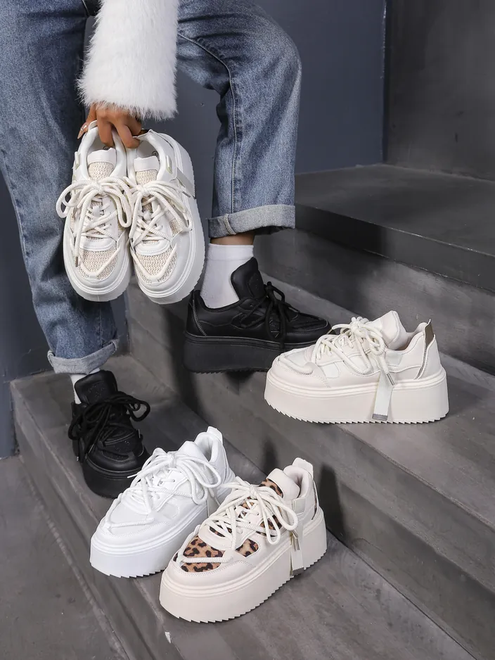 - Дамски платформени маратонки - перфектната комбинация от стил и комфорт. Обувки, изработени от еко-кожа. Модел с връзки и текстилна стелка. Идеални за активни хора!