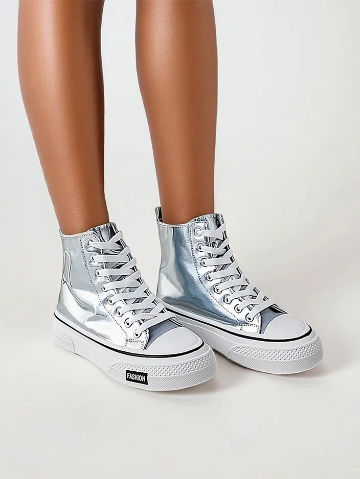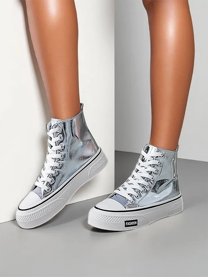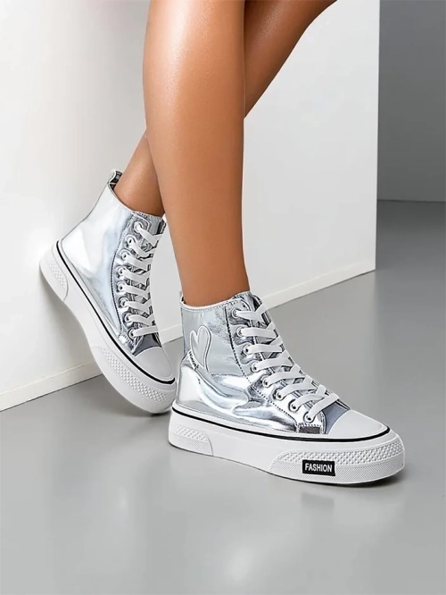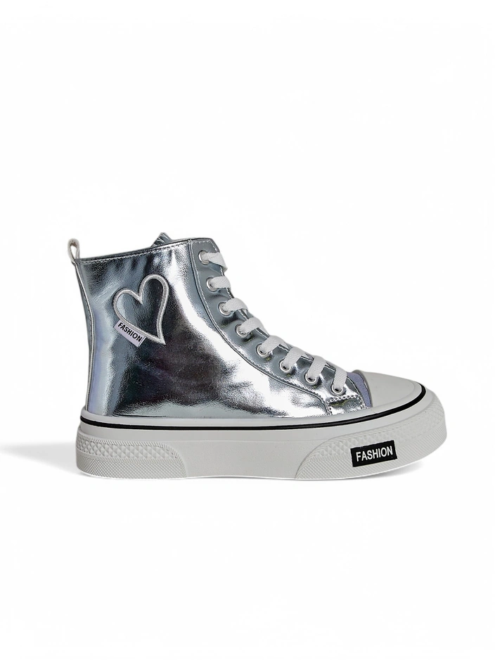 Royalfashion Високи женски маратонки с мотив сърце Сребърно сърце