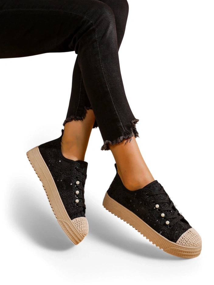 Royalfashion Дамски кецове от дантела с пайети Nille
