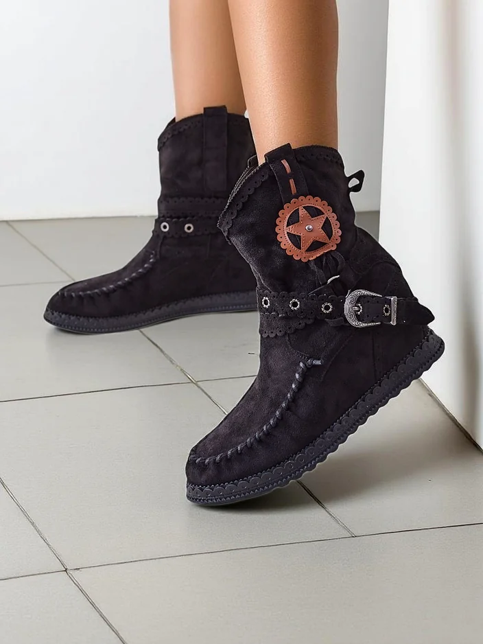 Royalfashion Жени боти до глезена на нисък клин Indianas