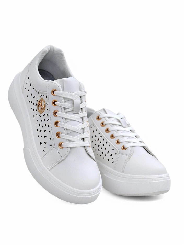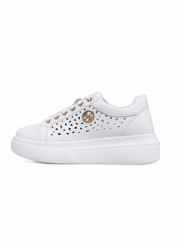 Дамски сникърси Calista Bianco от еко кожа, ажурни, пролетни 4,5 см