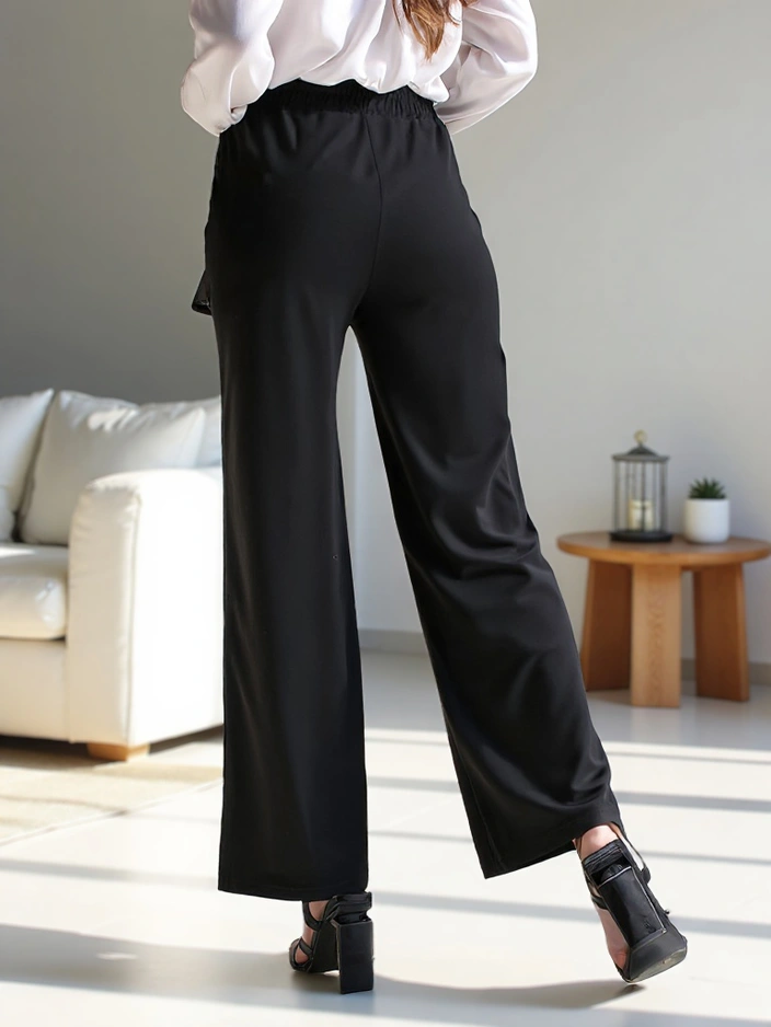 - Страхотни широки панталони, изработени от лек плат, моделът разполага с 2 джоба и еластична талия. Допълнително, декоративна катарама. Задължителен елемент във вашия гардероб! ЗАБЕЛЕЖКА: Точност на измерването (+/-) 1 см.