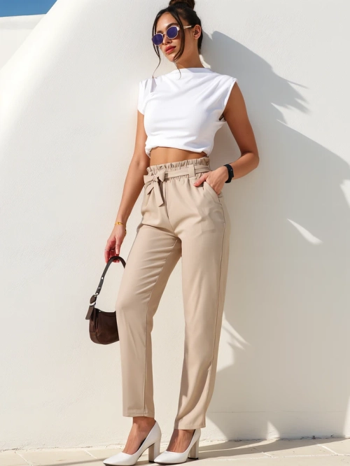 • Широк панталон, изработен от лек плат, моделът разполага с еластичен колан и два джоба. Удобни и уютни! ЗАБЕЛЕЖКА: Точност на измерванията (+/-) 1 см.
