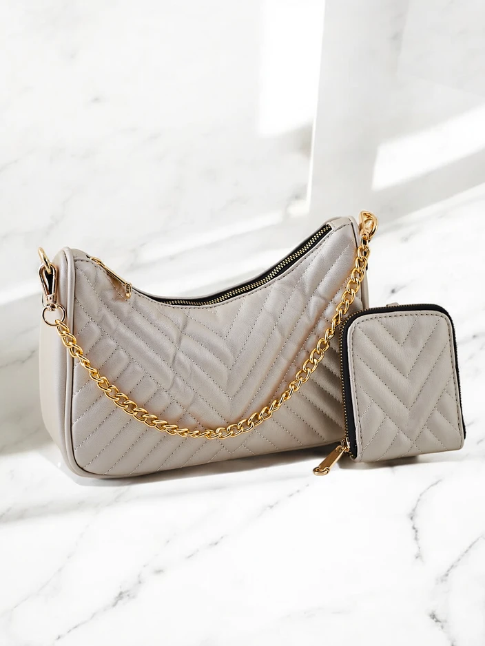 Royalfashion Малка дамска квилтирана чанта с портмоне