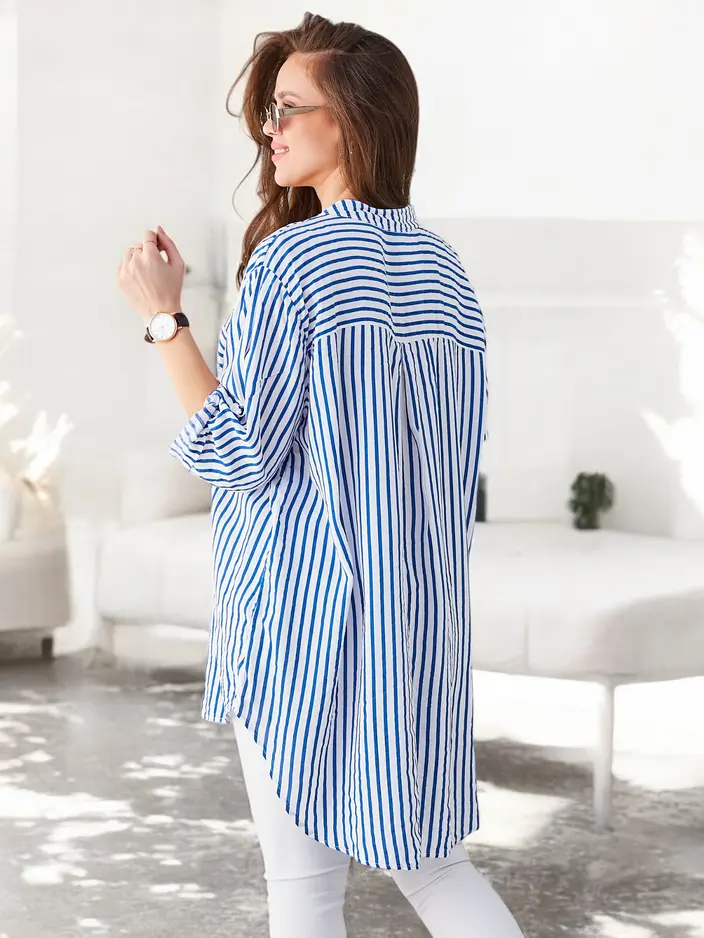 - Класическа, дълга, oversized ризка за жени, изработена от приятен плат. Разполага с V-образно деколте и дълги ръкави. Простият кройка осигурява идеално прилягане за всяка силует! ЗАБЕЛЕЖКА: Точност на измерването (+/-) 1 см.