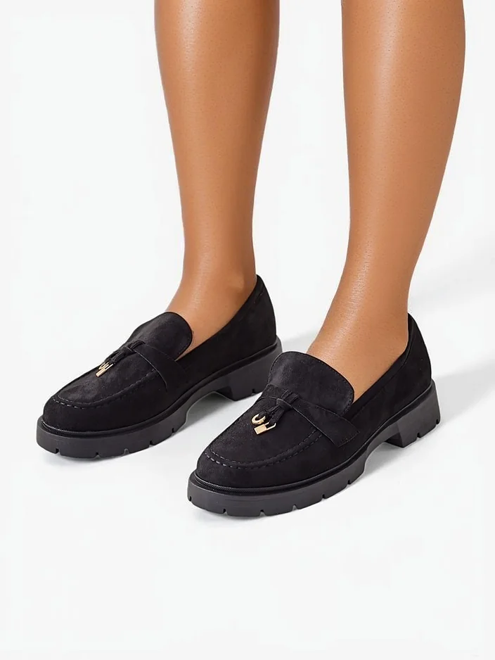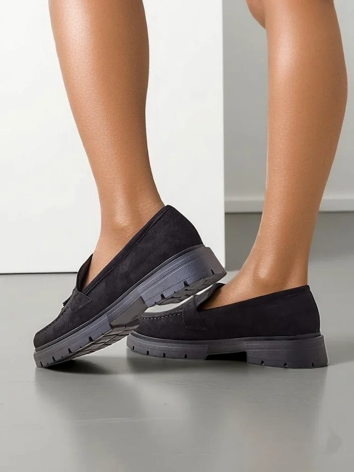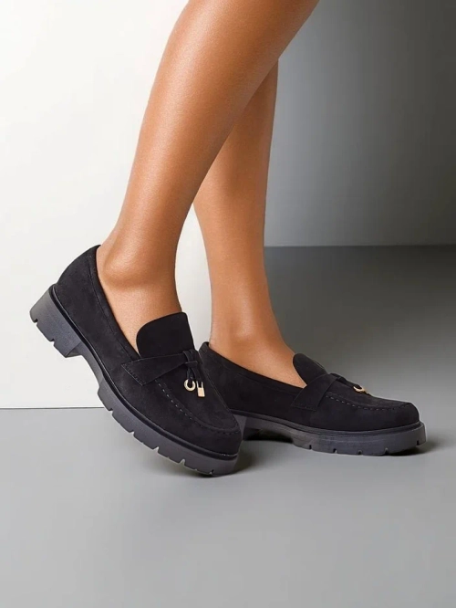 - Класически дамски мокасини с по-дебела подметка. Класически модел, изработен от еко кожа от велур с еко кожена стелка. Обувките имат елегантна украса на горната част. Перфектната основа за ежедневна употреба!