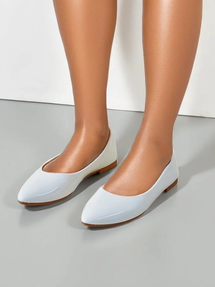- Уникални балеринки, изработени от лакова еко-кожа с остър нос. Меката еко-кожена стелка осигурява комфорт. Те ще подхождат перфектно на елегантни и модни аутфити!