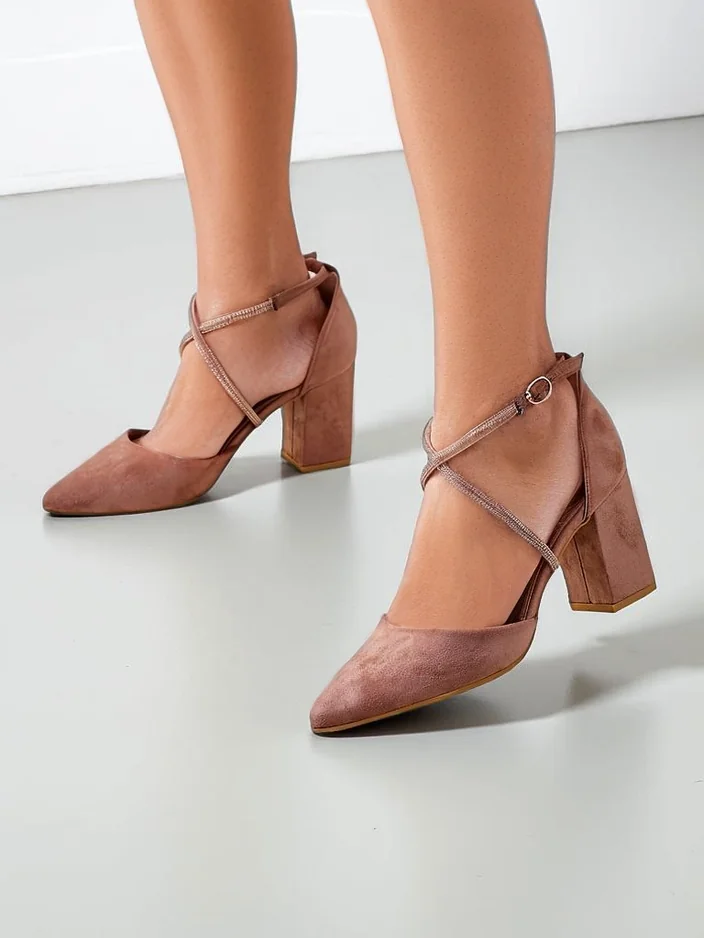 - Елегантни дамски токчета, изработени от екологичен велур. Вътрешността на обувката е облицована с екологично кожа, а