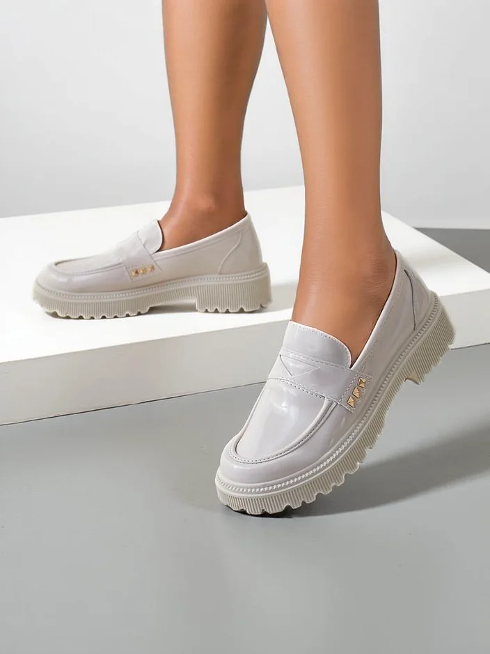 - Лек дамски лофер с плоска подметка. Модел с неформален стил, изработен от патентен еко-кожен материал, с текстилна стелка. Перфектни за пролетни тоалети!.