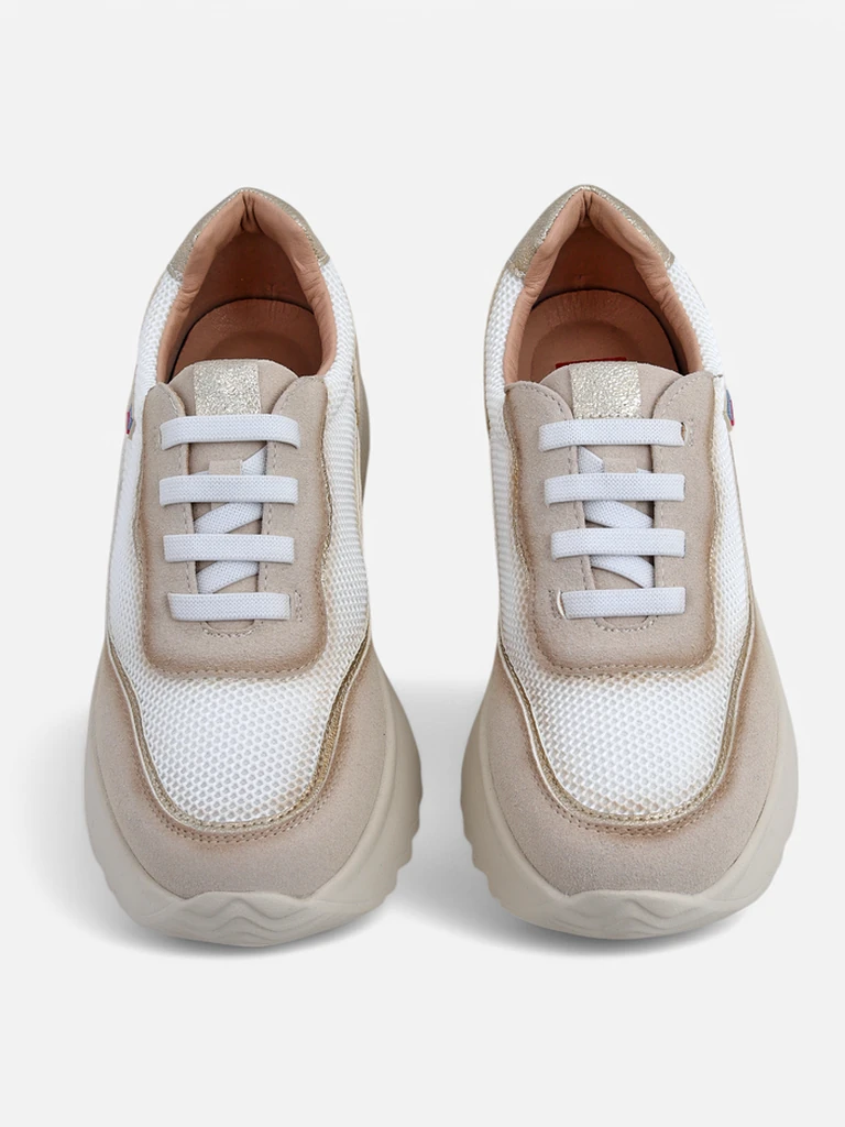 - Модерни женски маратонки с по-дебела подметка, изработени от еко-кожа и еко-суед. Вътре има мека еко-кожена стелка. Обувките са връзвани. Те ще бъдат страхотен аксесоар за ежедневни тоалети.