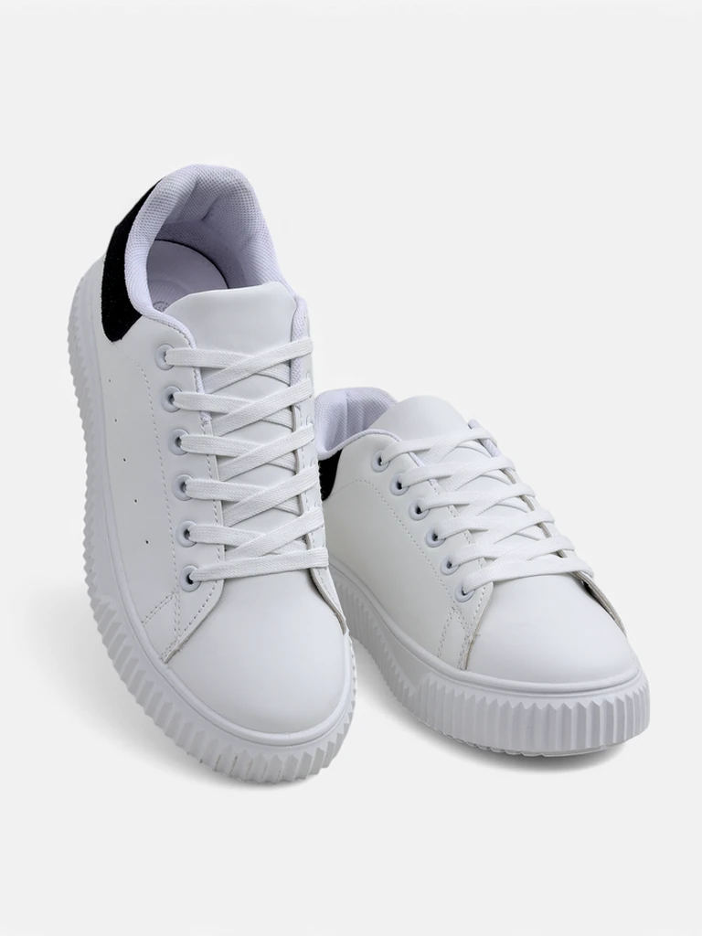 - Феноменални дамски сникърси на платформа - перфектна комбинация от стил и комфорт. Обувките са изработени от еко кожа. Моделът е с връзки и има текстилна стелка. Идеален за активни хора!