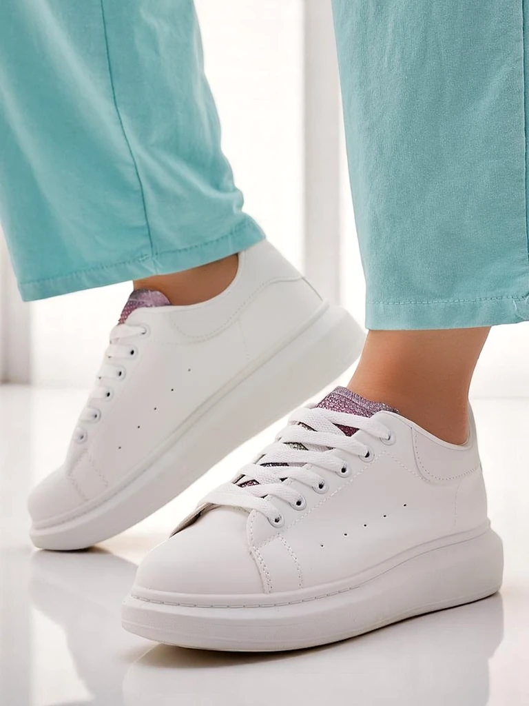 - Fenomenalne sneakersy damskie na platformie - perfekcyjne połączenie stylu i komfortu. Obuwie wykonane z eko skóry. Model sznurowany, posiada eko skórzaną wkładkę. Idealne dla aktywnych osób!