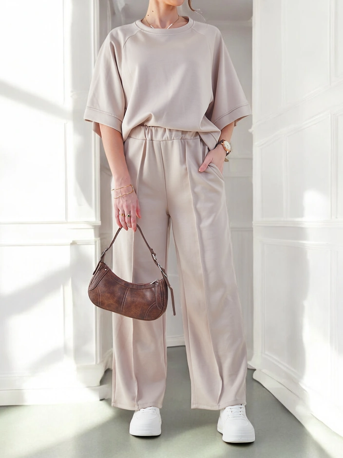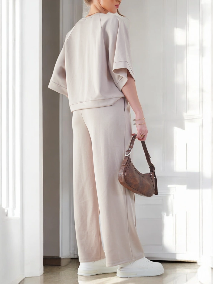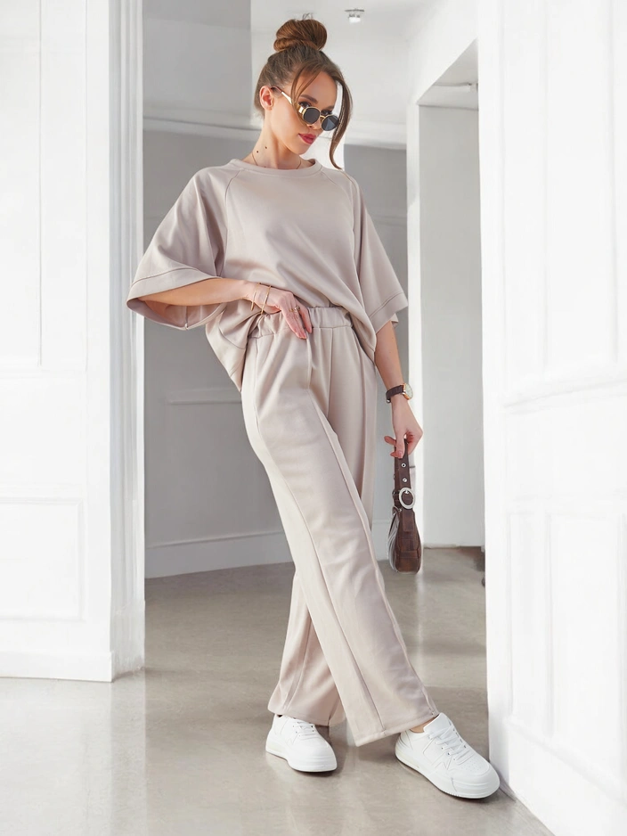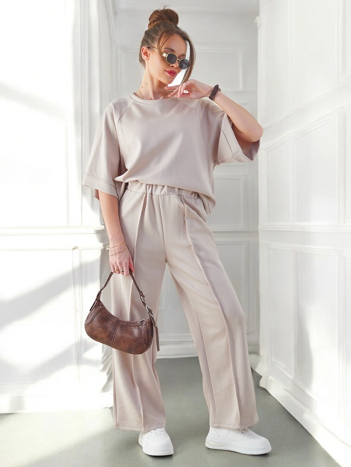 Royalfashion Женскo облекло с къси ръкави и разкроени панталони