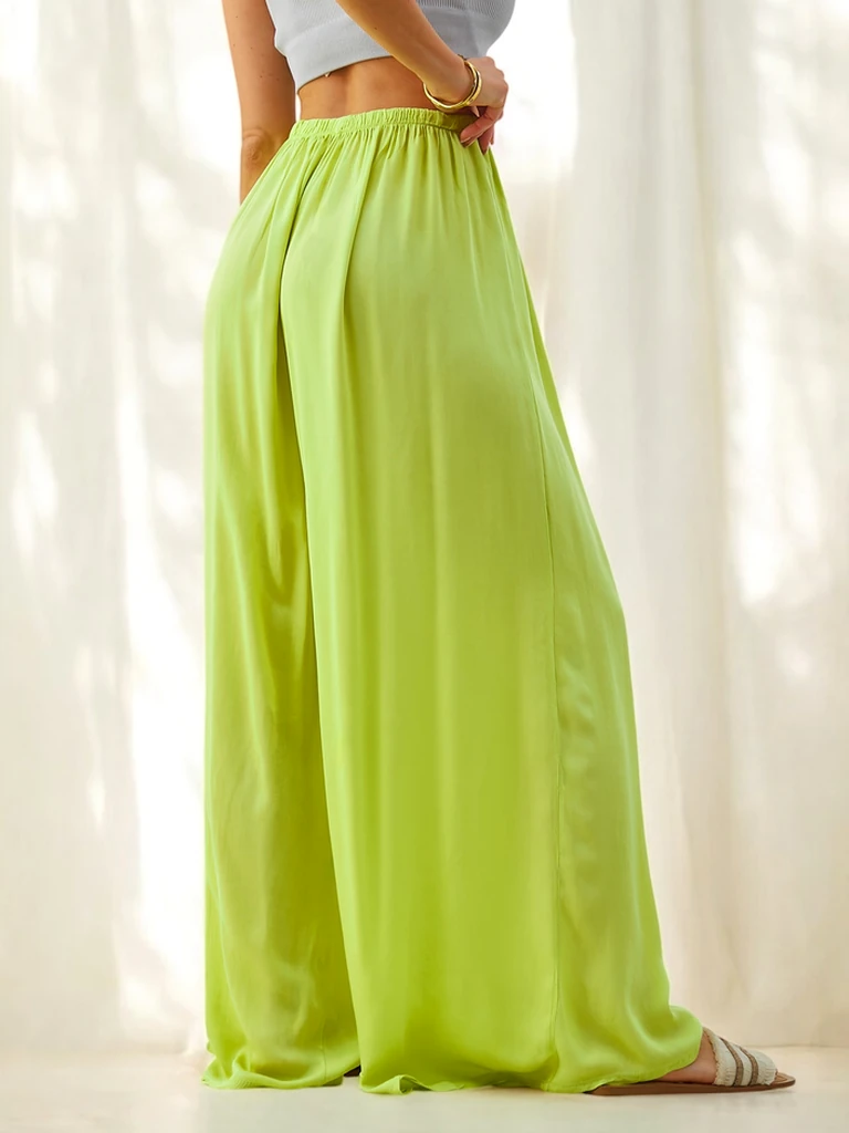 - По-широки панталони, изработени от лека материя, моделът разполага с еластичен колан. Удобни и уютни! ЗАБЕЛЕЖКА: Точност на измерванията (+/-) 1 см.