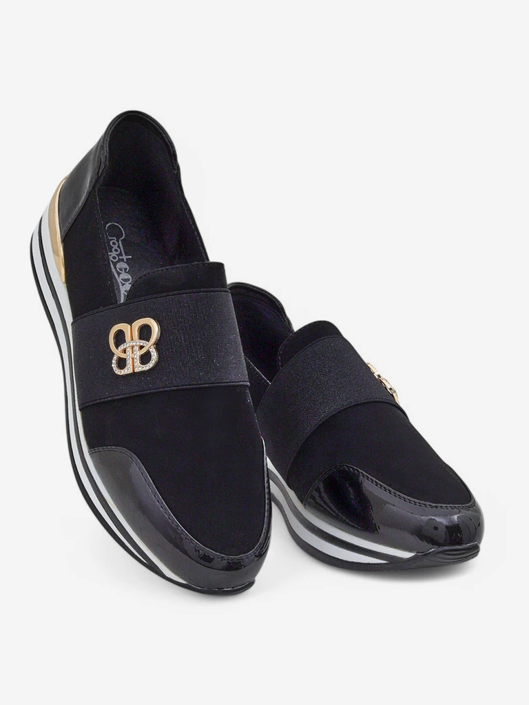 Дамски обувки Elektra Nero със златен акцент, екологична кожа, 3,5 см