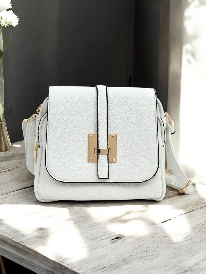 - Универсална чанта с цип и магнитно затваряне, изработена от екологична кожа. Моделът разполага с 1 отделение и външен джоб. Допълнително е снабдена с регулируемо презрамка. Перфектна за ежедневно ползване!