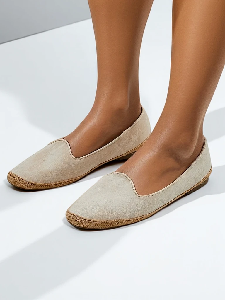 • Изключителни дамски еспадрили, изработени от еко велур и стелка от еко кожа. Плоската подметка, украсена с юта, осигурява комфорт. Модел, който се слага лесно. Перфектно допълнение към летните облекла!
