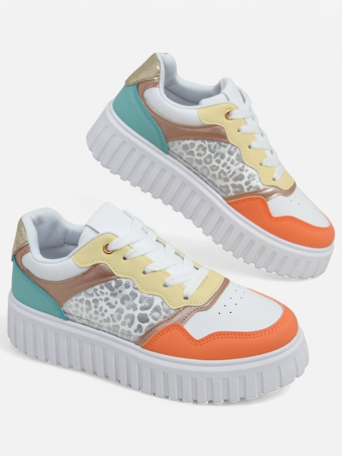 - Damskie sneakersy wykonane z eko skóry na platformie. Model sznurowany, posiada tkaninową wkładkę. Obuwie posiada sznurowanie i ozdobny print. Idealne do tworzenia stylowych outfitów!