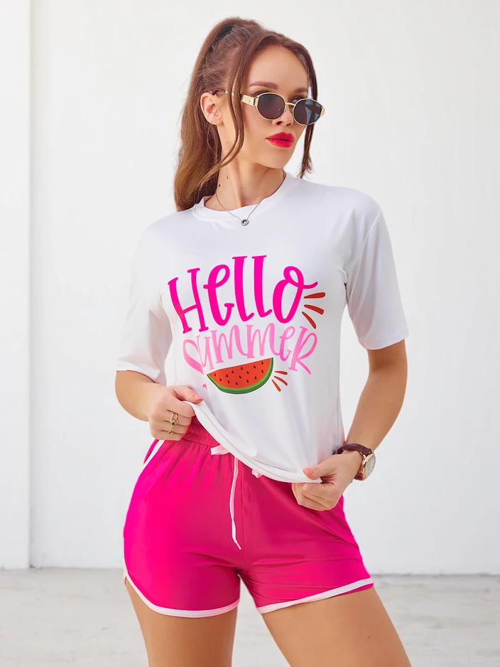 Royalfashion Дамски спортен комплект с тениска и шорти Hello Summer