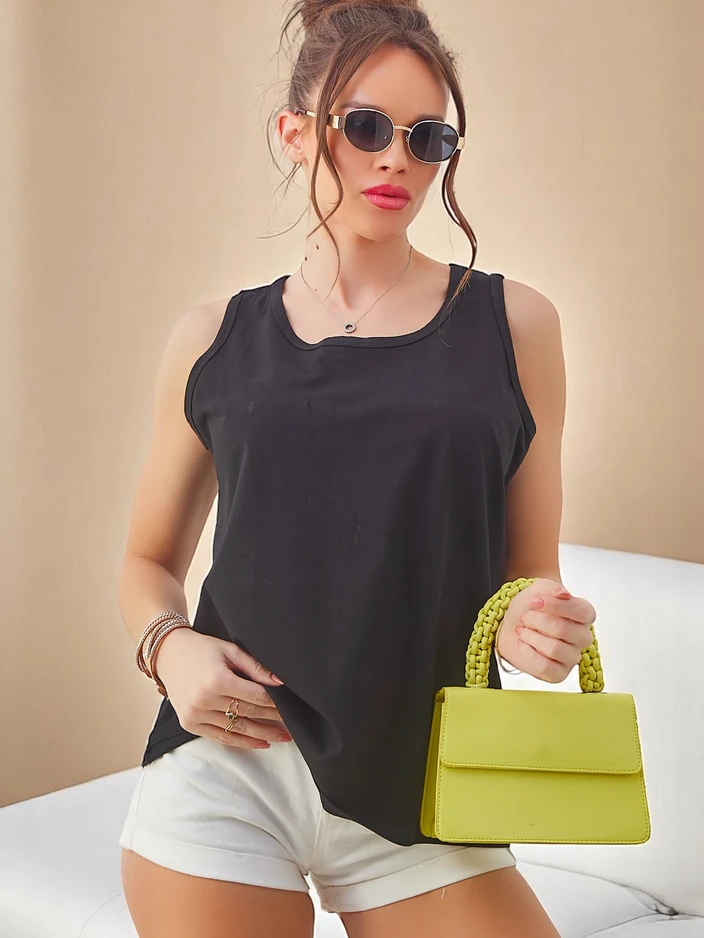 • Дамски памучен топ с деликатна дантела на гърба, съчетаваща комфорт с елегантен щрих. Перфектен за топли дни, придава лекота и изящество на всеки аутфит.