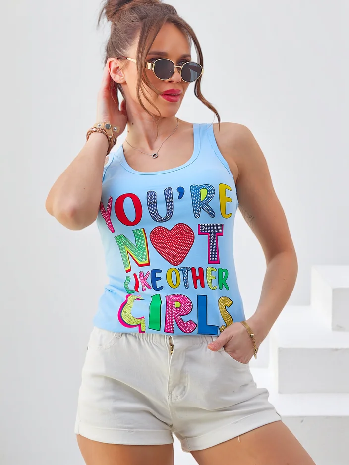 Royalfashion Женски памучен топ с презрамки и щампи