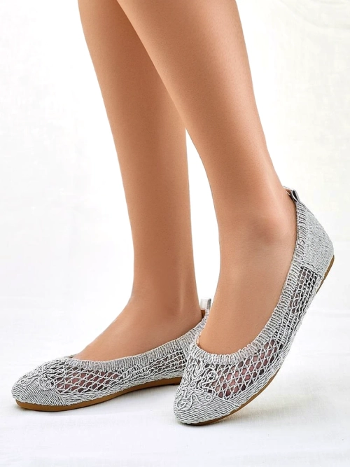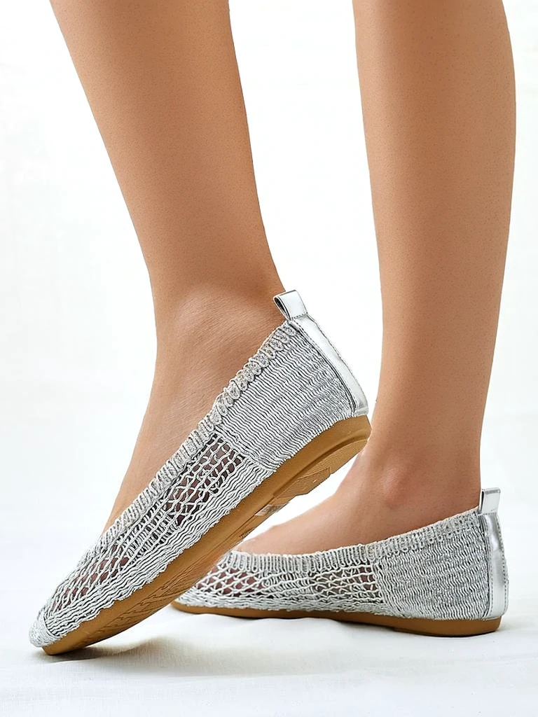 - Уникални балерини, изработени от перфориран текстил с закръглен нос. Мека еко-кожа подметка осигурява комфорт. Те са перфектни за елегантни и модни аутфити!