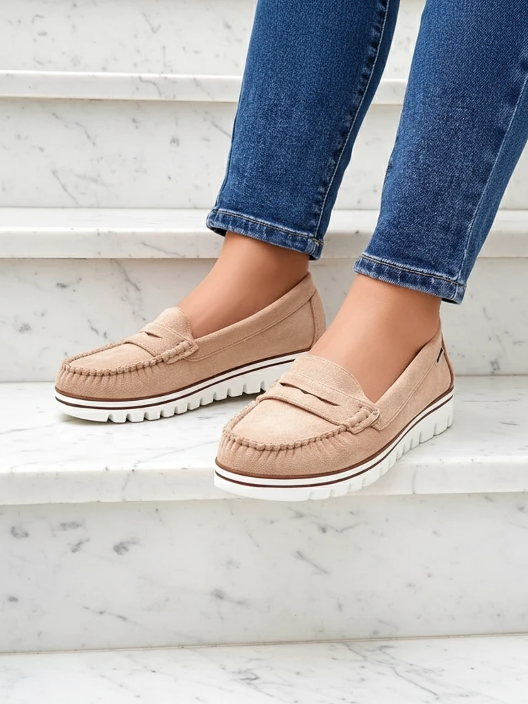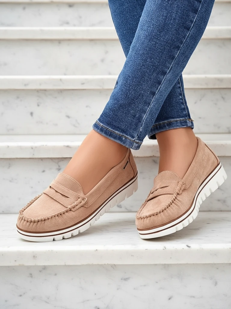 1. Ежедневен вид: комбинирайте мокасините с дънки и тениска, за да получите непринуден стил за всеки ден.