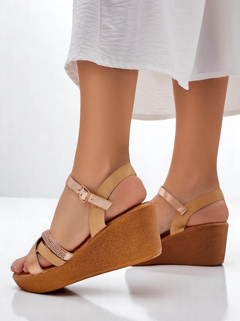 - Открийте елегантността с сандалите Glittera. Очарователни сандали на платформа, украсени с блестящи камъни и деликатен брокат, перфектно подчертават лятното сияние. Съчетание на комфорт и луксозен вид – идеални за всеки специален случай!