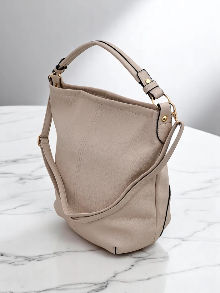 - Голяма дамска чанта, изработена от екологична кожа, с цип. Моделът разполага с 1 отделение и 3 вътрешни джоба и 1 външен джоб. Допълнително, колан с регулируема дължина. Идеален аксесоар за ежедневни аутфити!