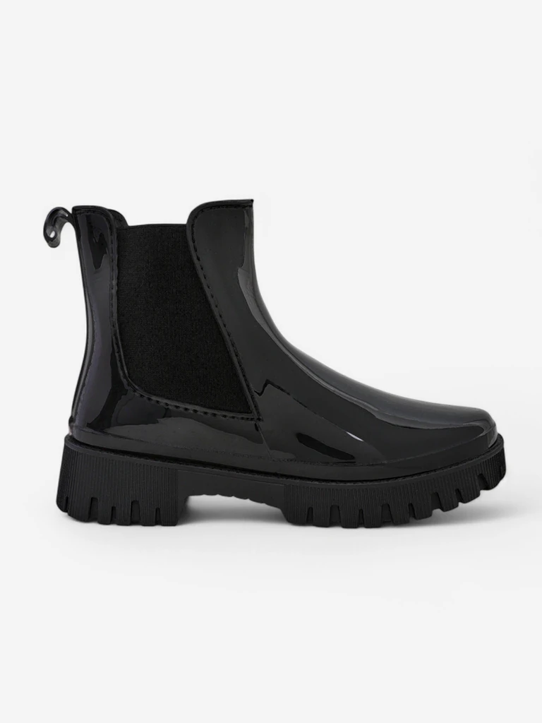 • Класически дамски гуменки, изработени от гумен материал с лакирано покритие. Стелката е изработена от текстилен материал. Обувки, идеални за дъждовни есенни дни!