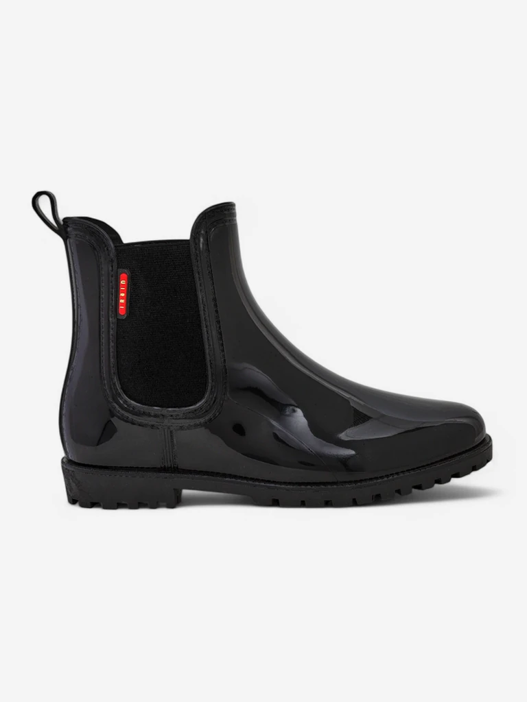 - Класически дъждовни ботушки за жени, изработени от гума с лаков финиш. Стелката е изработена от текстил. Обувки, идеални за дъждовни дни през есента!