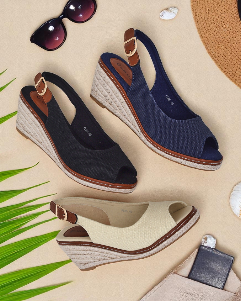 - Женски сандали на ток, изработени от текстил. Обувките имат закопчаване с катарама. Необходимо изискване за този сезон!