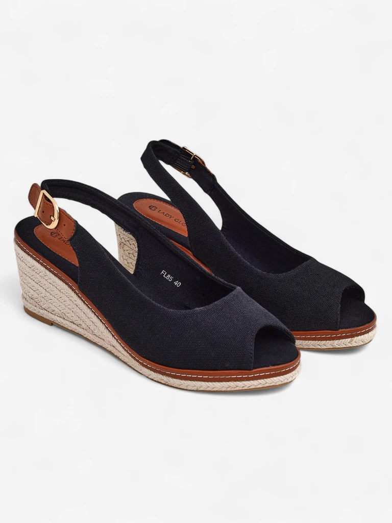 - Женски сандали на ток, изработени от текстил. Обувките имат закопчаване с катарама. Необходимо изискване за този сезон!
