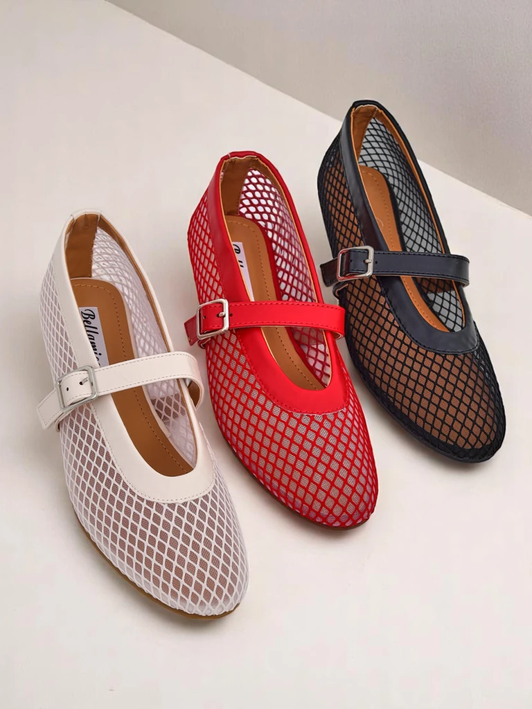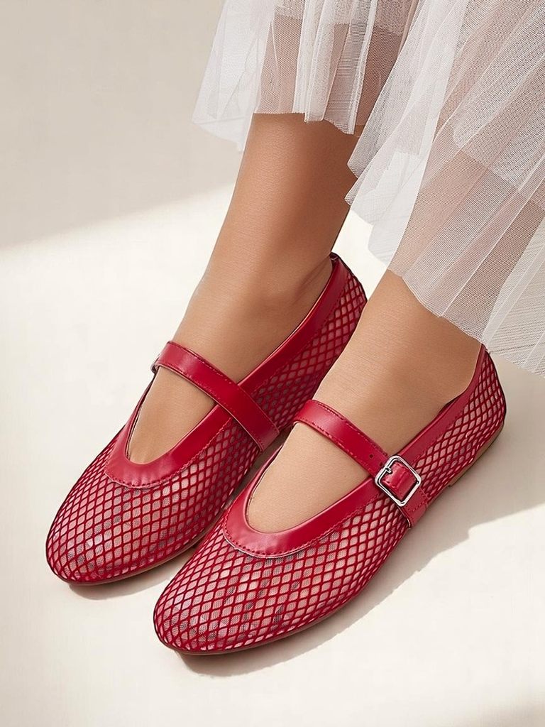 - Изключителни балеринки, изработени от плат с прорези. Горната част е декорирана с каишки. Меката стелка от еко кожа осигурява комфорт, а каишката държи обувката перфектно на крака. Те са перфектни за модерни визии!