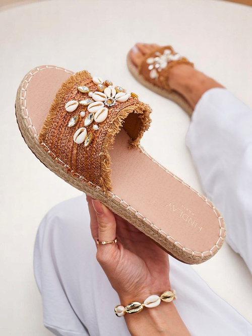 Сандали Royalfashion Callista Boho Camel на плоска платформа с мидички