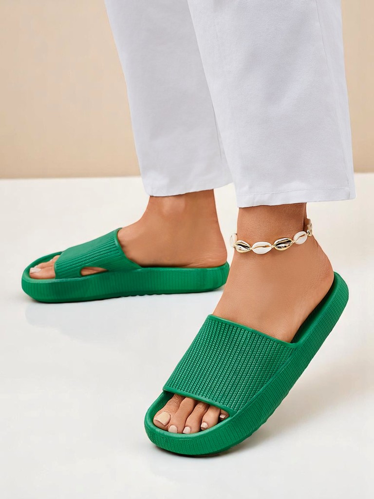 Меката и еластична EVA пяна се адаптира към формата на стъпалото, осигурявайки изключителен комфорт. Противоплъзгащата се подметка гарантира стабилност и безопасност на мокри повърхности. Клонките са леки и дишащи, за да се предотврати изпотяване на стъпалата.