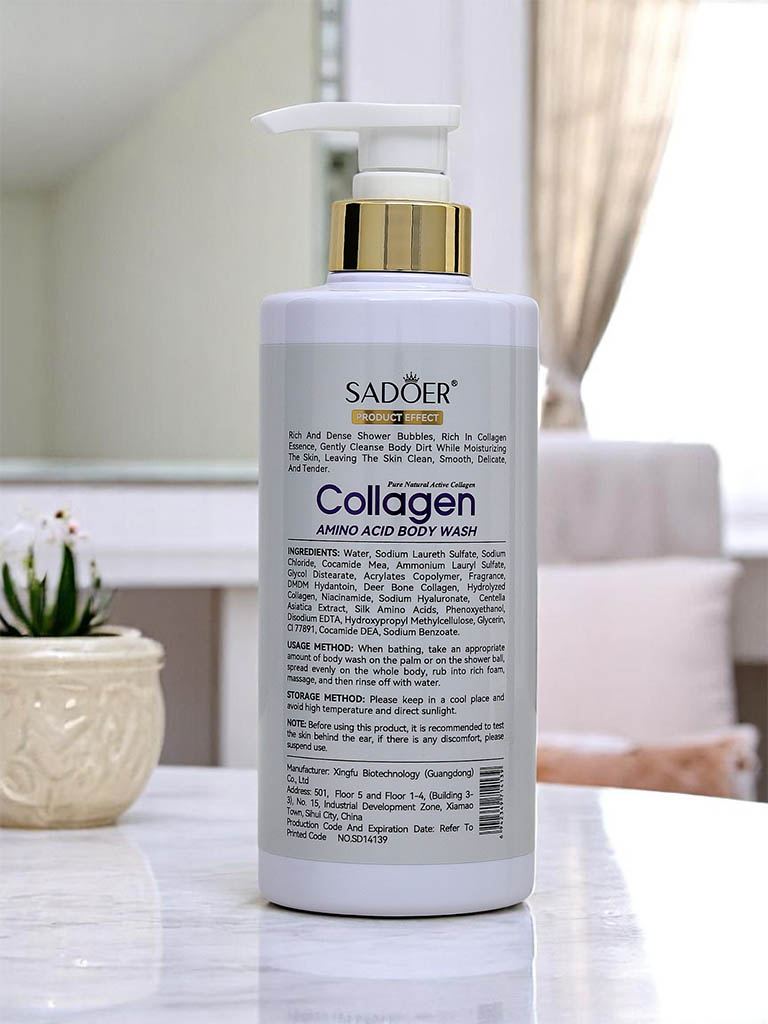 - Душ гел с колаген – нежно почиства кожата, хидратира я и подобрява еластичността ѝ благодарение на колагена. Оставя кожата гладка, освежена и с приятен аромат.