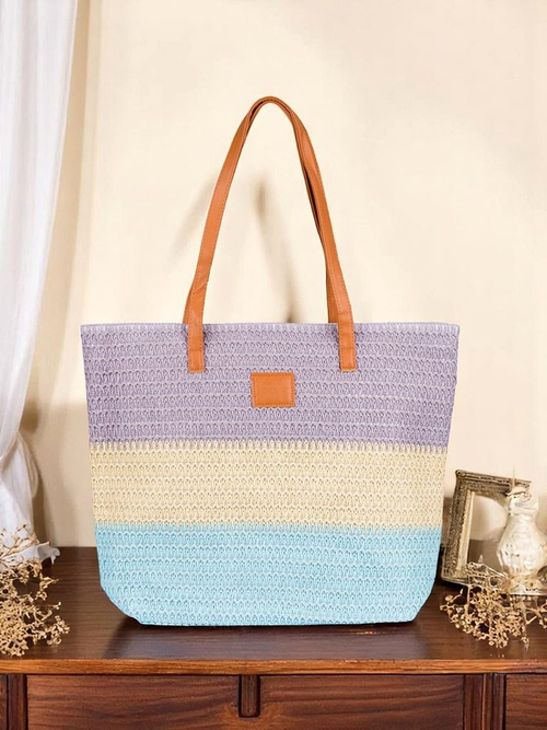 Royalfashion Голяма сламена дамска чанта с дръзки райета