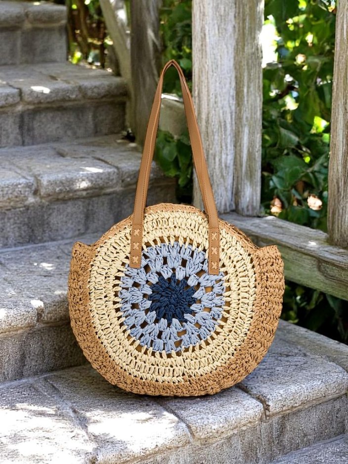 - Голяма, полукръгла сламена чанта, изработена от плитка, украсена с флорален десен. С 1 отделение, джоб и цип. Перфектна за лятото, плажа и стилни излизания!