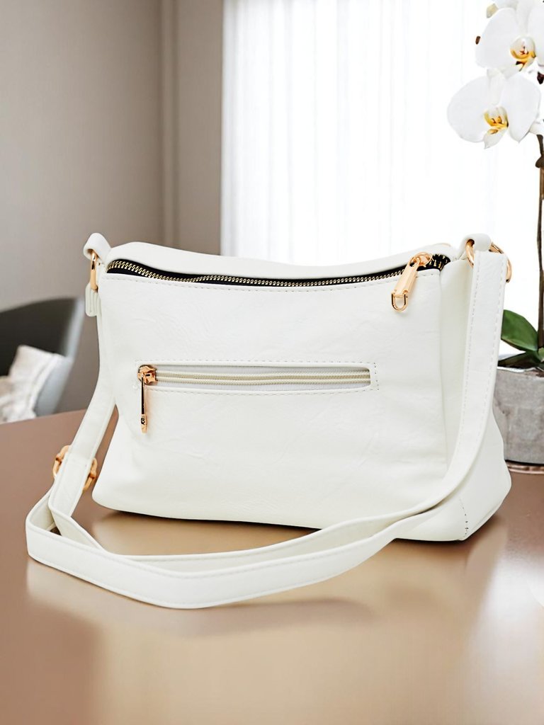 - Малката чанта от еко кожа съчетава стил и удобство. Един отделен джоб, три вътрешни джоба и регулируема дръжка я правят идеална както за ежедневието, така и за вечерни излизания.