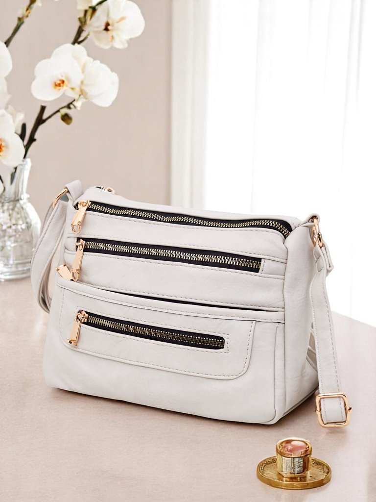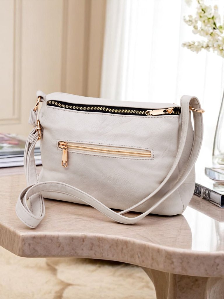 - Малката чанта от еко кожа съчетава стил и удобство. Един отделен джоб, три вътрешни джоба и регулируема дръжка я правят идеална както за ежедневието, така и за вечерни излизания.